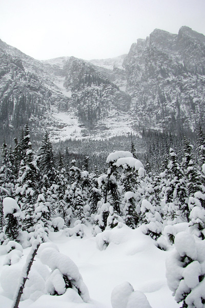 At Lake Louise, there was ton of snow, however thanks to its popularity, a lot of skiers and snowshoers already made snow trail up to where I needed to go off trail.