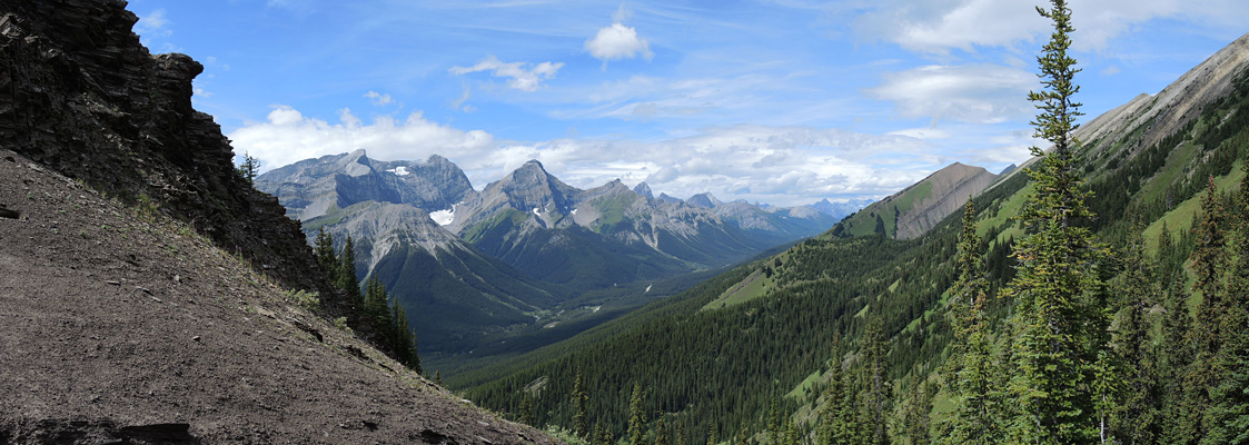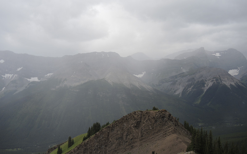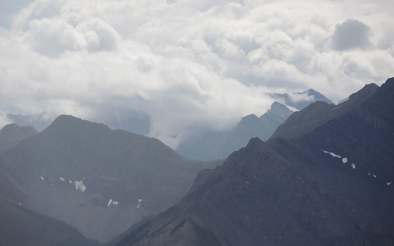 It was decent day at this point. I didn't know the mountain range behind is actually called Spray Mountains which includes Warspite, Black Price, etc.