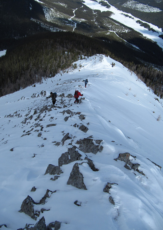 False summit block. This one qualifies as "Ridge of Death". To get on the top of the ridge involves difficult scramble, and ridge is very narrow.