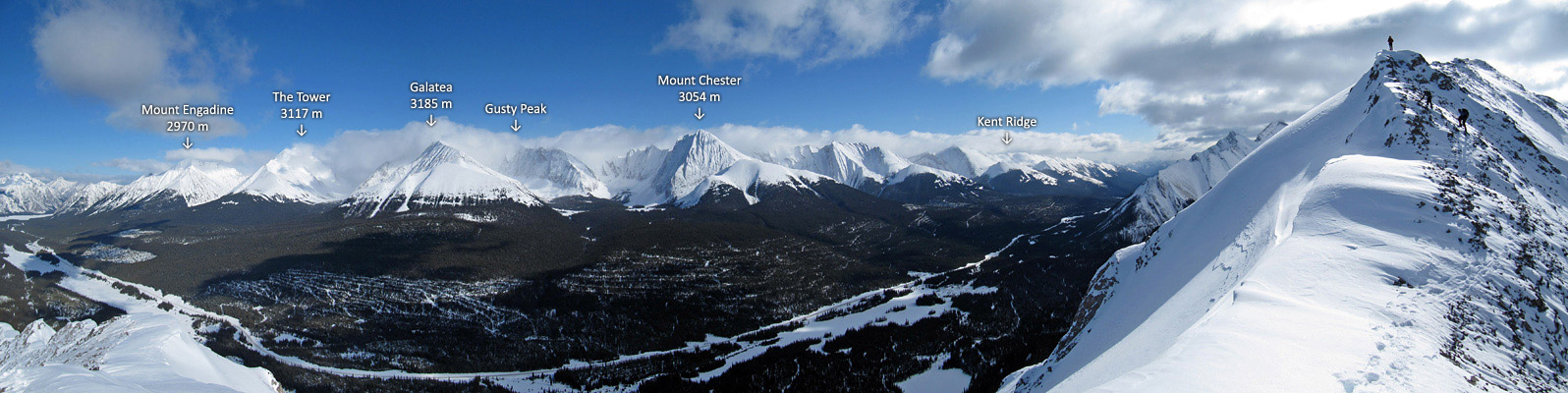 Aga coming up. Commonwealth Peak, Pig's Tail, and Birdwood behind. Pig's Trail is blended with Birdwood and it is hard see.